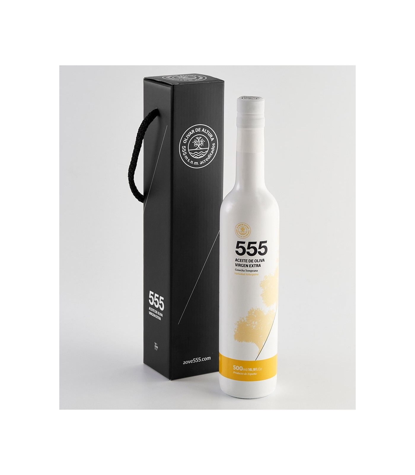 555 Arbequina hat ein Aroma von grünen Oliven, mit einem ausgewogenen Profil und vielen süßen Anklängen. Seine fruchtige Intensität ist mittelstark, wobei fruchtige Aromen wie grüner Apfel, grüne Banane oder Gras und sogar verschiedene Früchte schon bei der ersten Annäherung hervortreten.