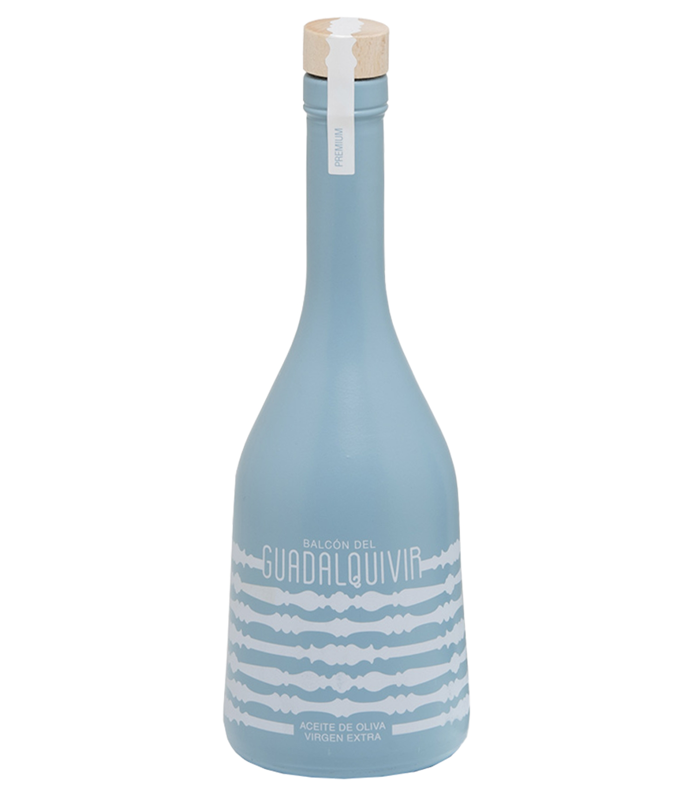Balcón del Guadalquivir wird einer hochwertigen bemalten und mit Siebdruck versehenen Glasflasche geliefert. Außerdem hat er eine Messkappe mit einem natürlichen Holzkopf.