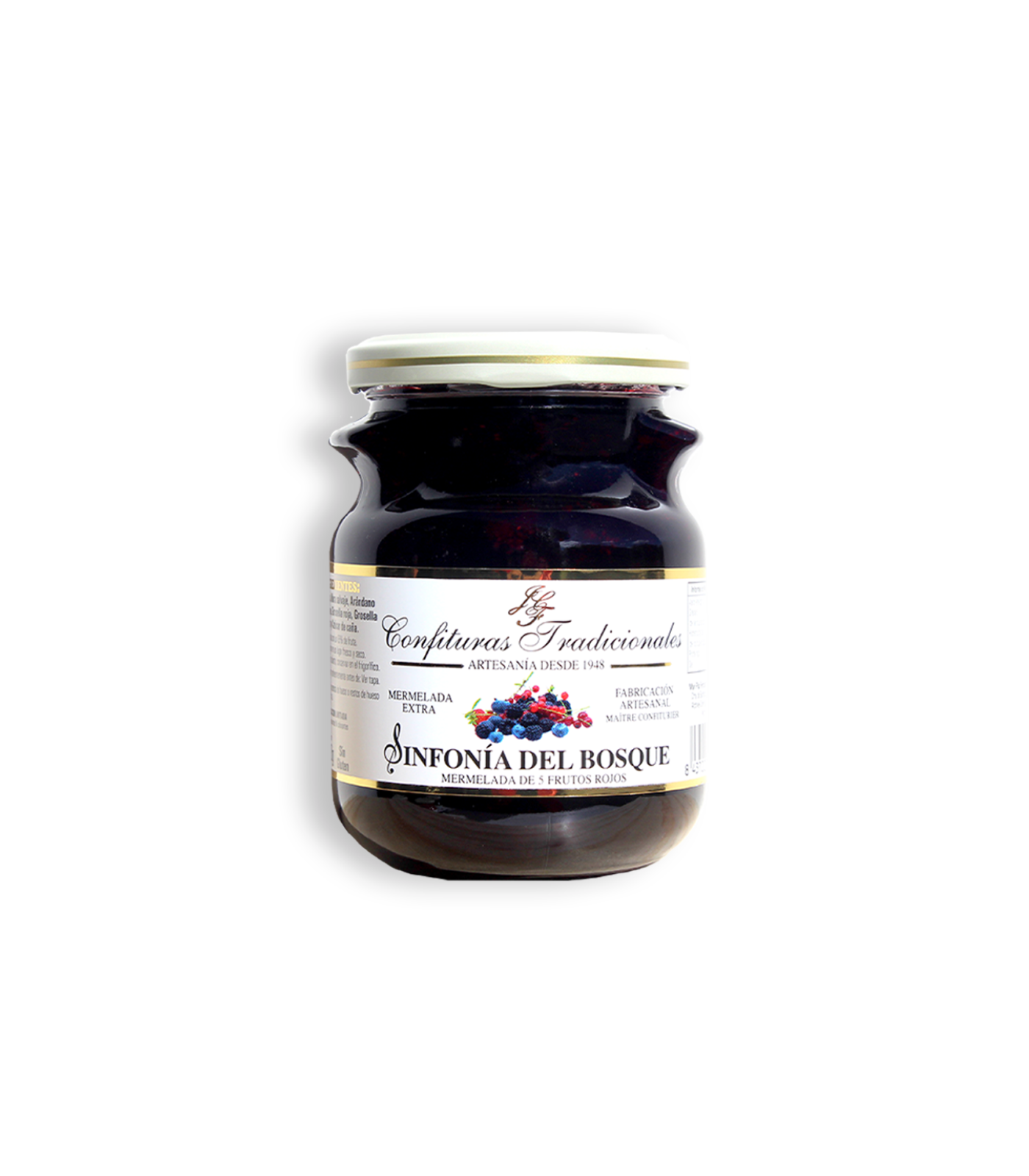 Auf der Suche nach gastronomischer Perfektion hat Confituras Tradicionales die Süße der Erdbeere, die Intensität der wilden Brombeere, die Tiefe der schwarzen Johannisbeere, die Frische der roten Johannisbeere und die Kraft der wilden Heidelbeere zu einer einzigartigen, exquisiten und gesunden Konfitüre vereint. Das Ergebnis ist eine Geschmacksskala, die ein außergewöhnliches Gourmeterlebnis bietet.