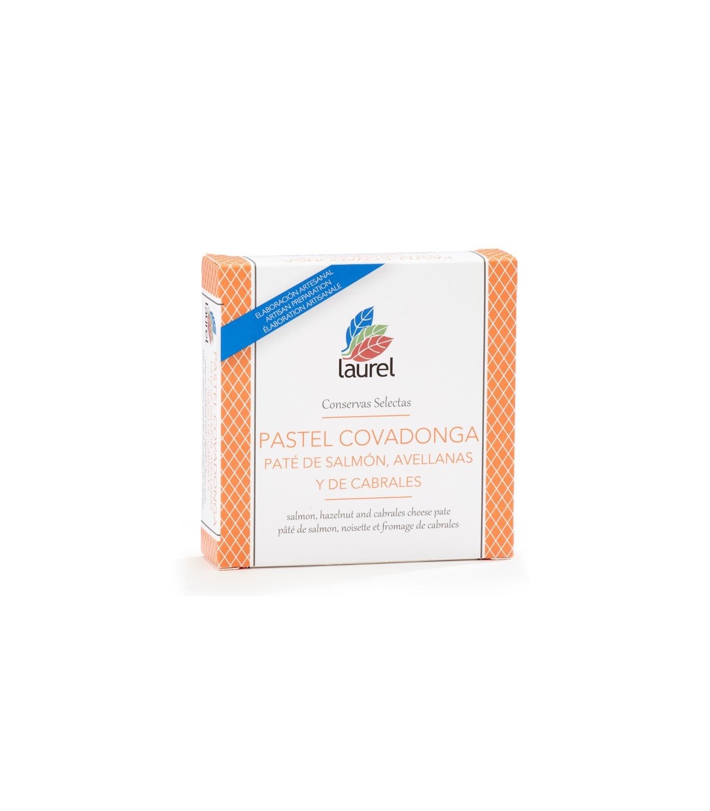 Pastel Covadonga ist eine handwerklich hergestellte Pastete, die in Avilés in Asturien hergestellt wird und drei emblematische Zutaten der asturischen Gastronomie vereint: Cabrales-Käse, Haselnüsse und Lachs. Die Pastete hat eine glatte, cremige Textur und bietet einen einzigartigen Geschmack, der die Aromen des Cabrales-Käses mit Haselnuss- und Lachsnoten mischt.