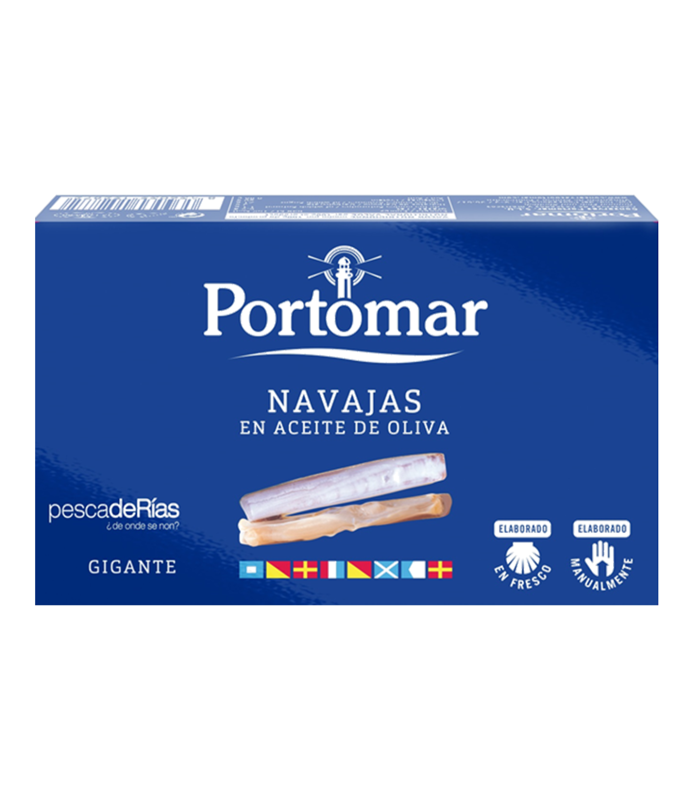 25x Portomar schwertmuscheln aus der galicischen rias in olivenöl - Dose 111 gr