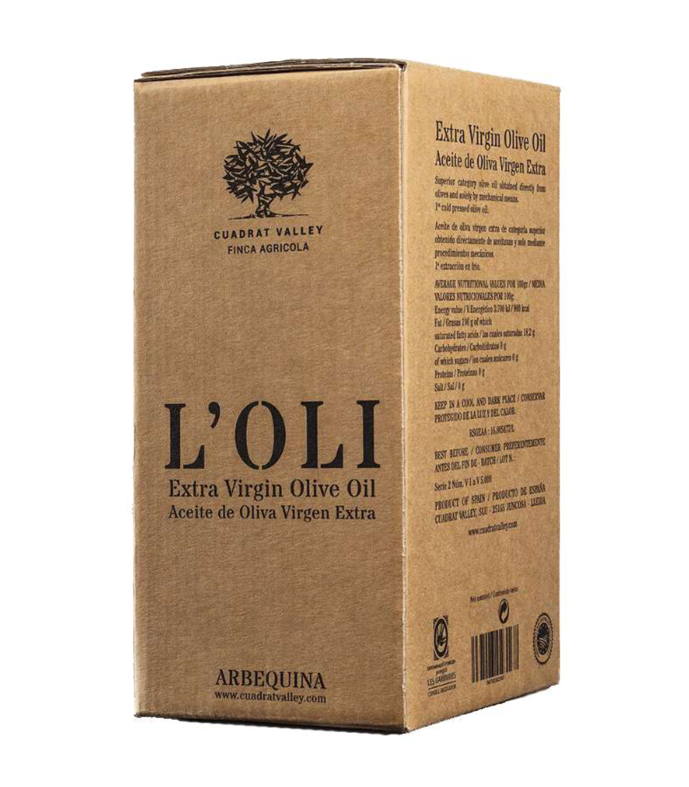 L'Oli ist ein fruchtiges, reifes und tadelloses Öl von mittlerer Intensität und süß, mit ausgeprägten Aromen von Mandeln, Artischocken und Bananen. Seine Farbe, sein Aroma und sein Geschmack entfalten ihren Zauber. Im Durchschnitt werden 6 kg Arbequina-Oliven benötigt, um 1 Liter L'Oli zu erhalten.
