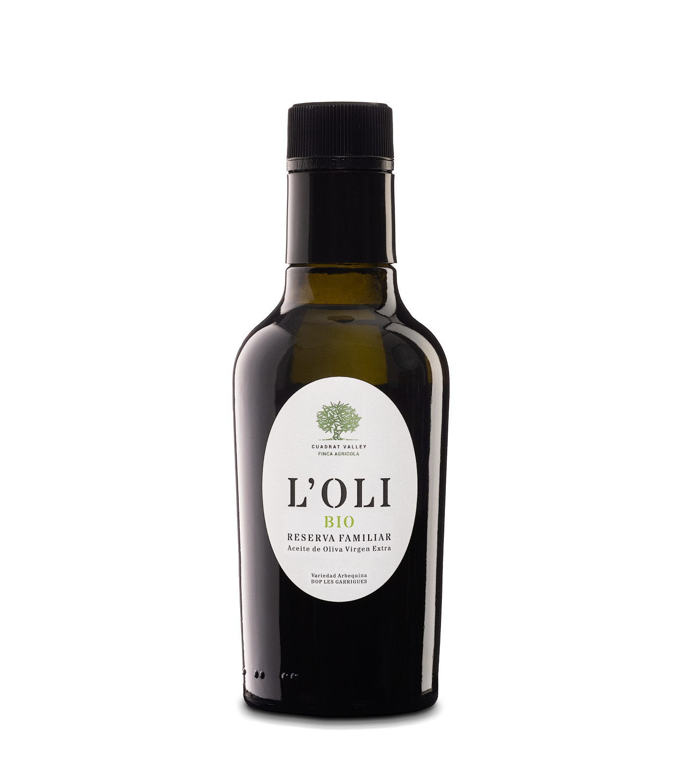 Natives Bio-Olivenöl extra aus L'Albagés (Lleida), hergestellt aus Arbequina-Oliven, die im November geerntet werden, wenn die Temperaturen am niedrigsten sind und die Früchte sich zu verfärben beginnen. Dieses Öl ist durch die Ursprungsbezeichnung Les Garrigues geschützt. Im Durchschnitt werden 6 kg Arbequina-Oliven benötigt, um 1 Liter L'Oli BIO Familienreservat zu erhalten.