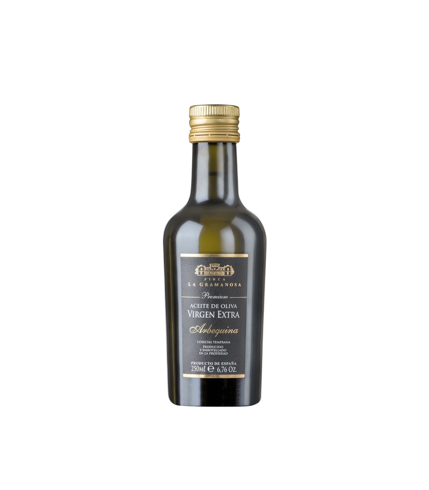 Oro del Desierto Arbequina - Quadratische Glasflasche 250 ml.
