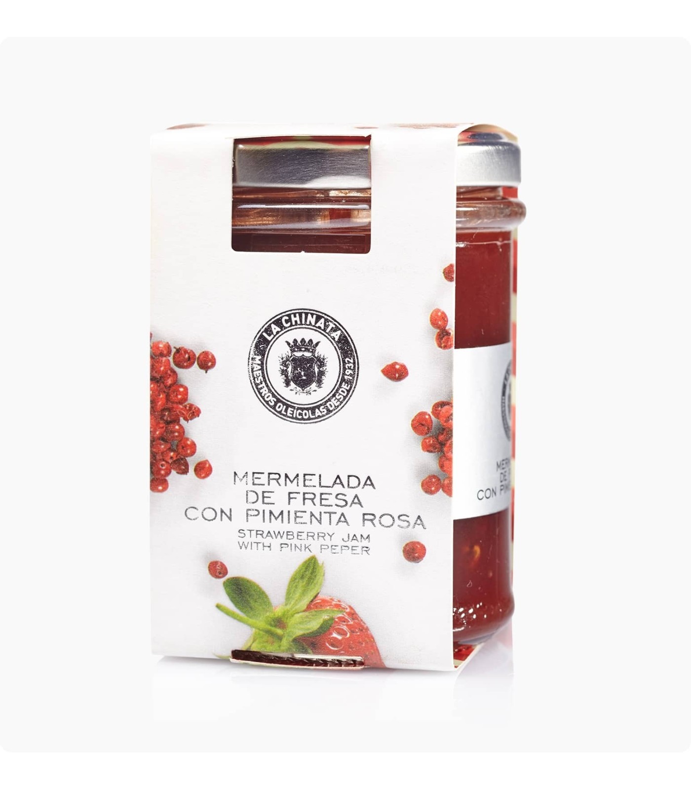 Diese Erdbeerkonfitüre mit rosa Pfeffer ist eine überraschende Kombination aus der Süße ausgewählter frischer Erdbeeren und der leichten Schärfe von rosa Pfeffer. Es ist ein Geschmackserlebnis, dessen Kombination Sie nicht gleichgültig lassen wird.