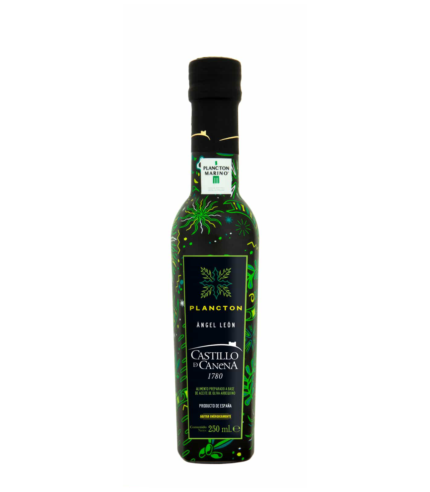 Intensives und brillantes grünes Öl mit Plankton- Schwebestoffen. Es hat einen starken Charakter in Nase und Mund, obwohl in beiden auch andere einzigartige und überraschende Empfindungen auftauchen. Sie sind das Ergebnis der Kombination dieses Meeresprodukts mit dem Saft der frischen Olive und verleihen ihm grüne und fruchtige Noten, die die Grünalgen, das Jod und die Intensität des Krustentieres positiv verstärken.