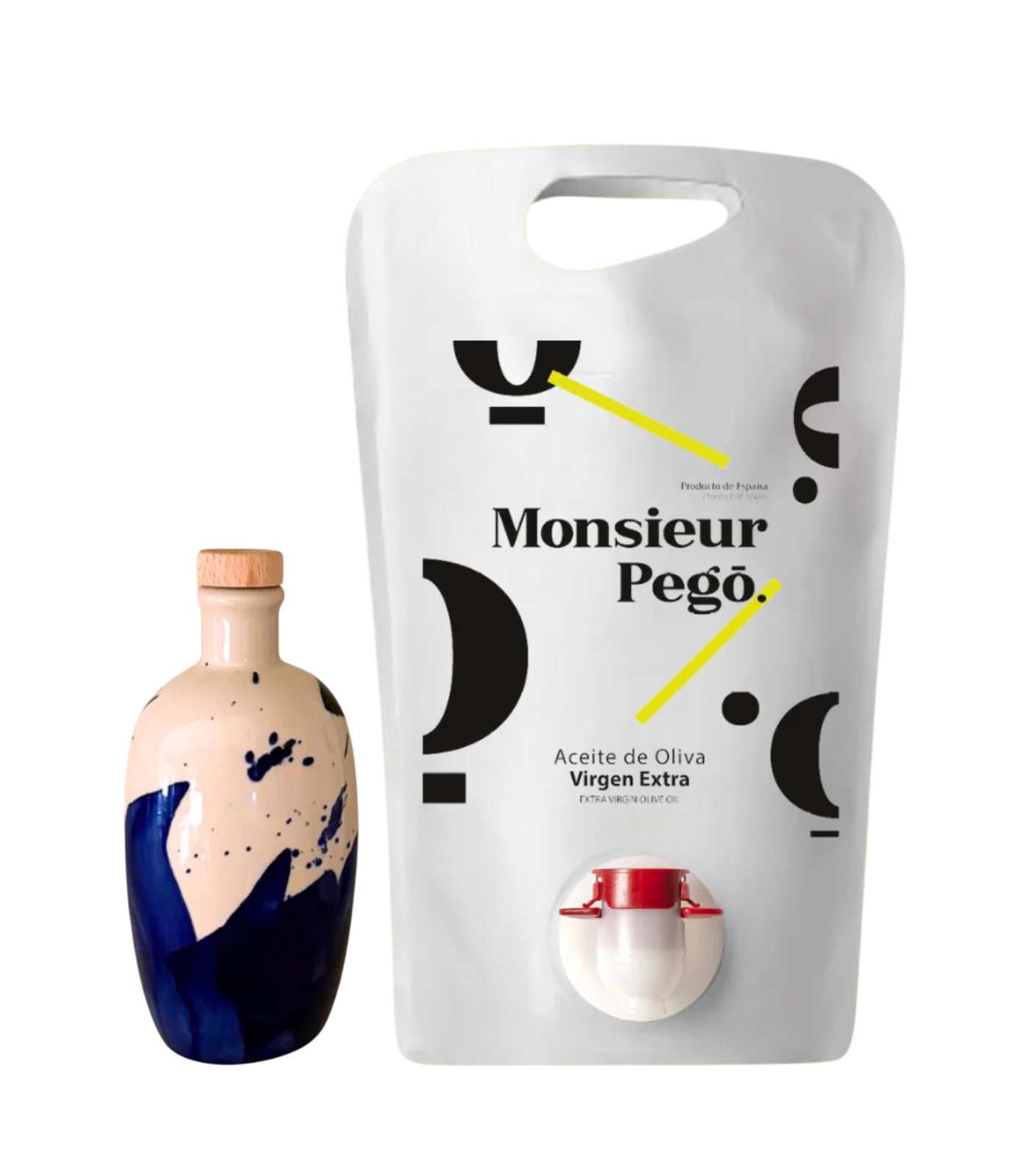 Monsieur Pegó setzt sich für Nachhaltigkeit und verantwortungsvollen Konsum ein und lädt uns ein, auf das zu achten, was wir haben, und darüber nachzudenken, was wir konsumieren. Das native Olivenöl extra wird in Keramikflaschen abgefüllt, die von Kunsthandwerkern aus Córdoba handgefertigt und handbemalt werden. Die Flaschen können wiederverwendet und nachgefüllt werden oder Teil des täglichen Lebens werden.