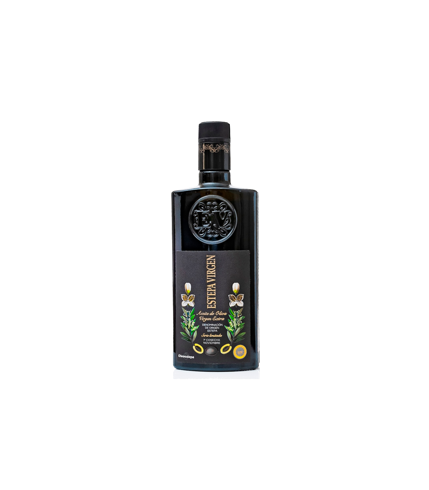 Natives Olivenöl extra der Spitzenklasse aus Estepa (Sevilla), hergestellt aus einer Auswahl aller Olivensorten, die in der Region der Ursprungsbezeichnung Estepa angebaut werden.