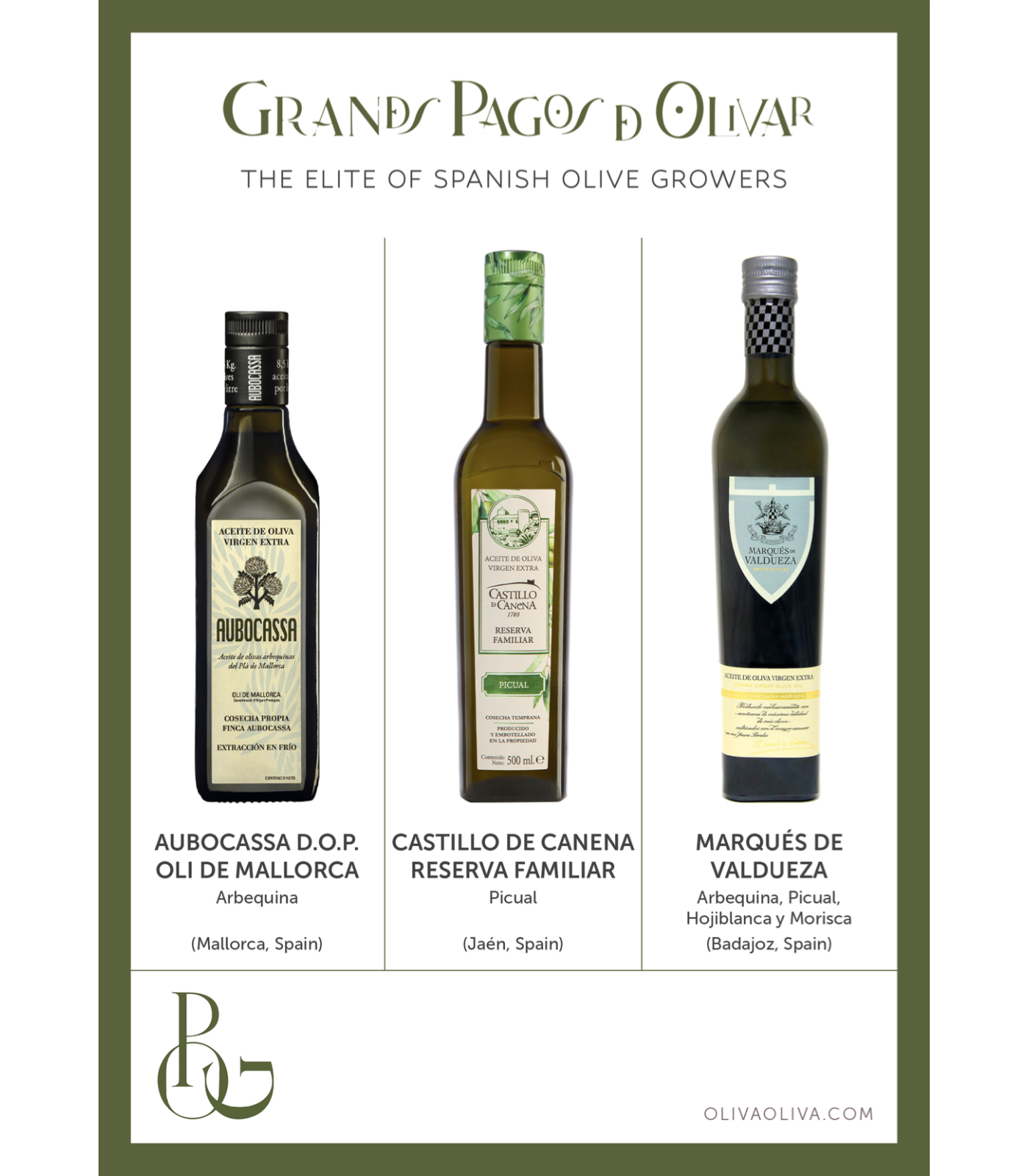 Die Mitglieder der Grandes Pagos de Olivar, die aus verschiedenen spanischen Olivenanbaugebieten stammen, haben daher eine Besonderheit gemeinsam: Ihre nativen Olivenöle extra werden in einem geschlossenen Raum hergestellt, in dem das für die Weinkultur typische Konzept des «Château» auf den Olivenhain übertragen wird.