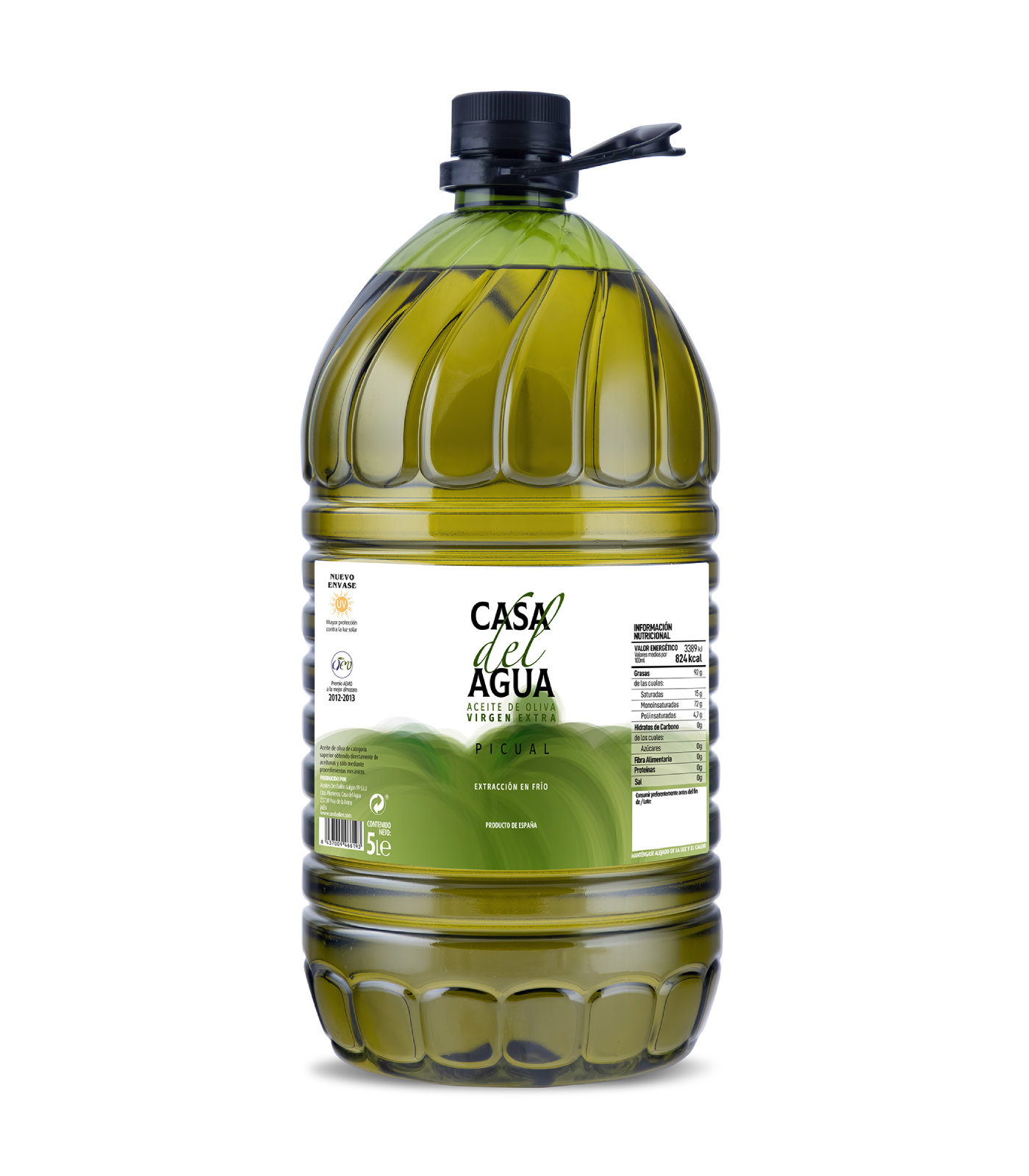 Casa del Agua de Oro Bailén Extra Virgin Olive Oil, Picual variety, box of 3 x 5L PET bottles.