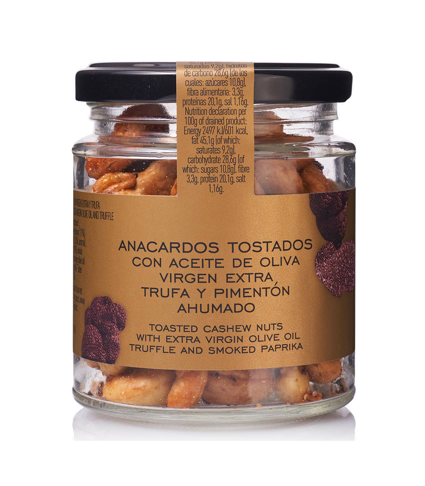These roasted cashew nuts with extra virgin olive oil, truffle and smoked paprika are a very healthy and original gourmet snack.