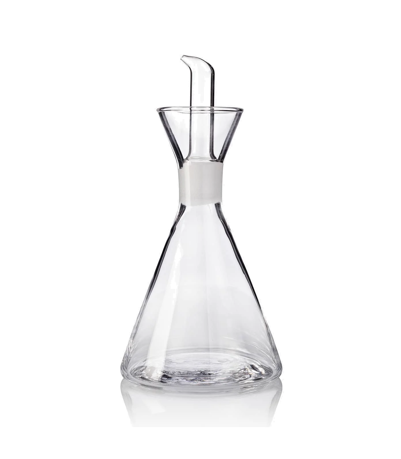 The La Chinata anti-drip oil can has a capacity of 500 ml. and consists of a conical glass bottle with a Pyrex glass pouring spout.