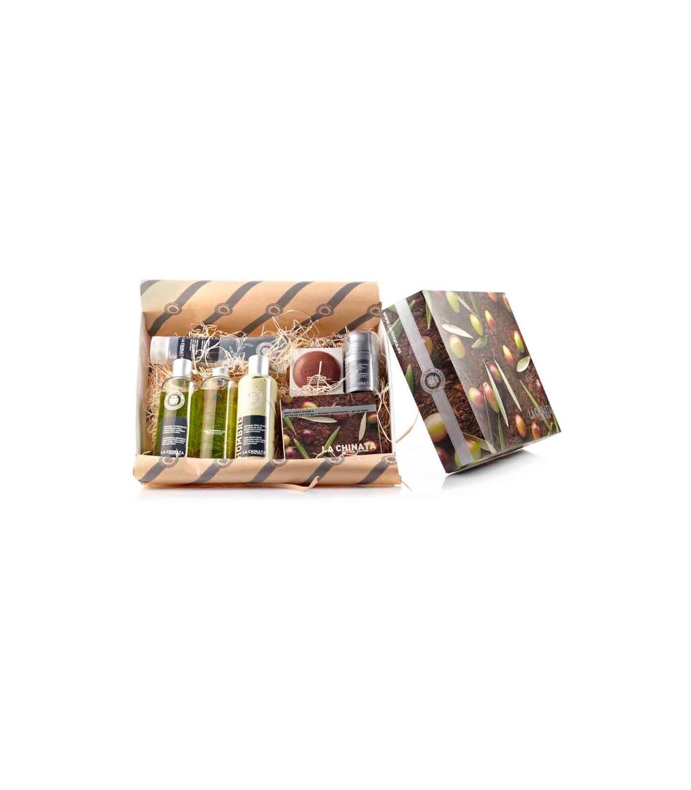 La Chinata Big Gift Pack Man offers a selection of products for him from its Natural Edition section, elaborated with Extra Virgin Olive Oil, Thermal Waters and Extract from Olive Leaf.