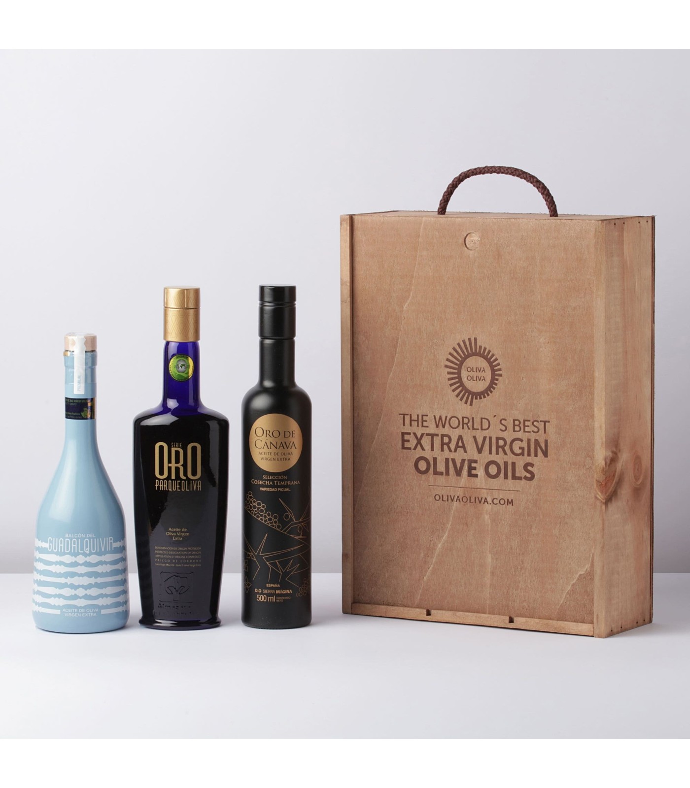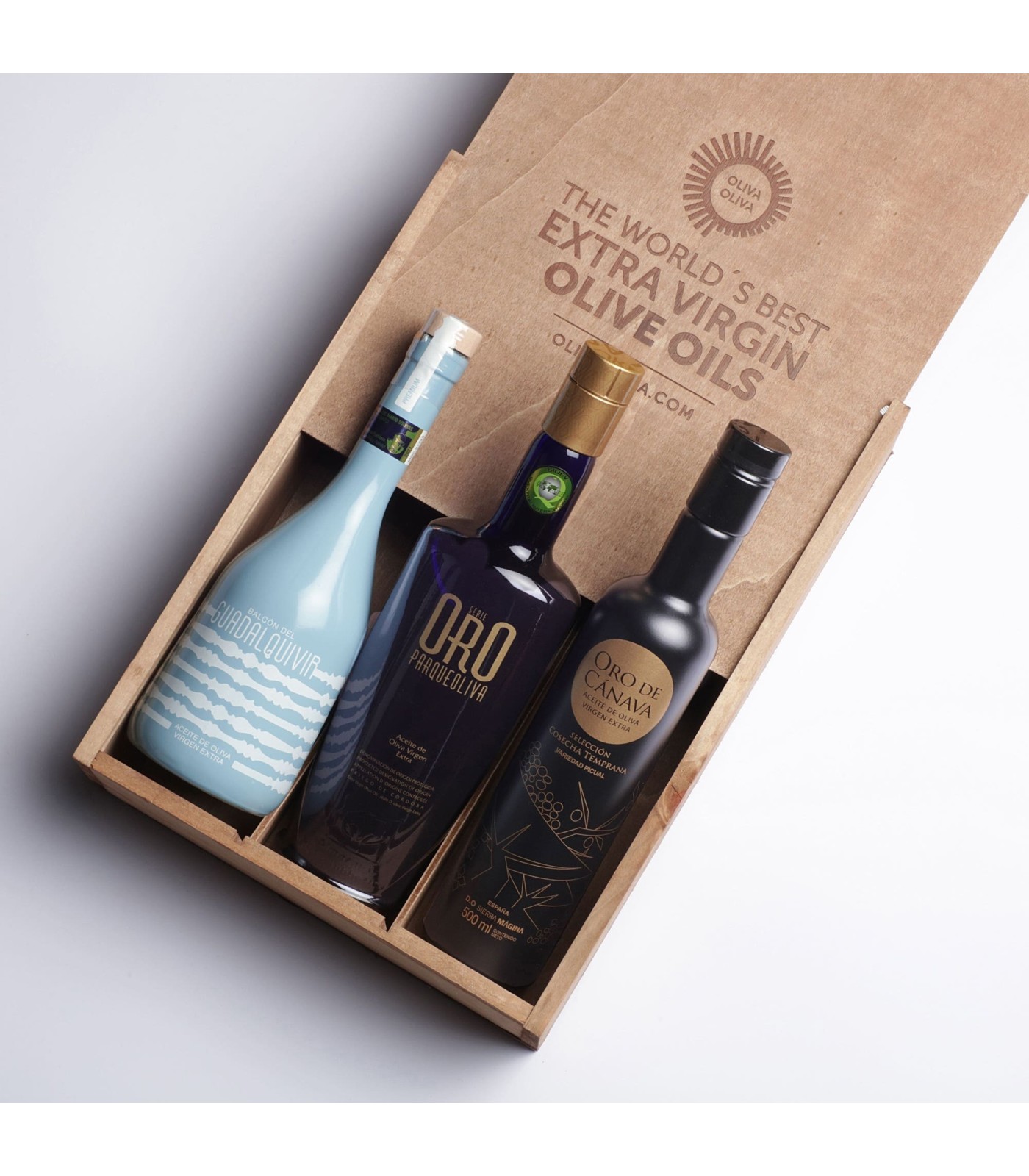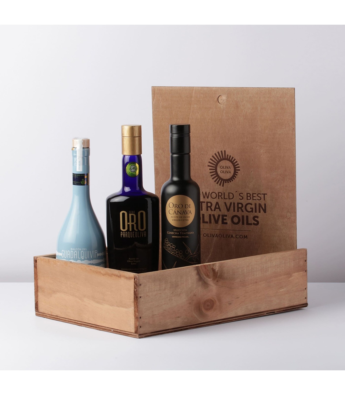 This wooden box includes the 3 best Extra Virgin Olive Oils in the world in 2021, awarded with the Mario Solinas International Quality Award.