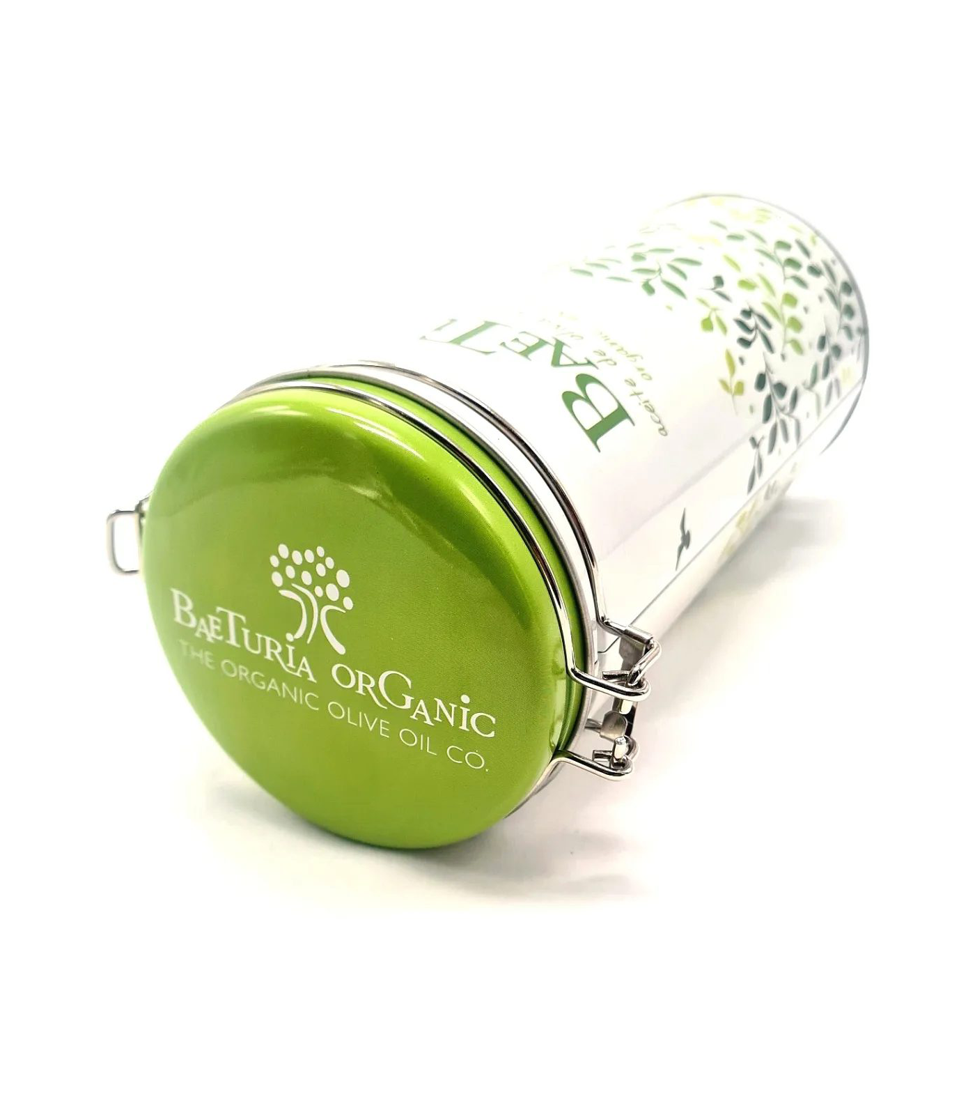 Organic extra virgin olive oil of the Morisca variety with a greenish-gold colour. Limited edition in metallic case.