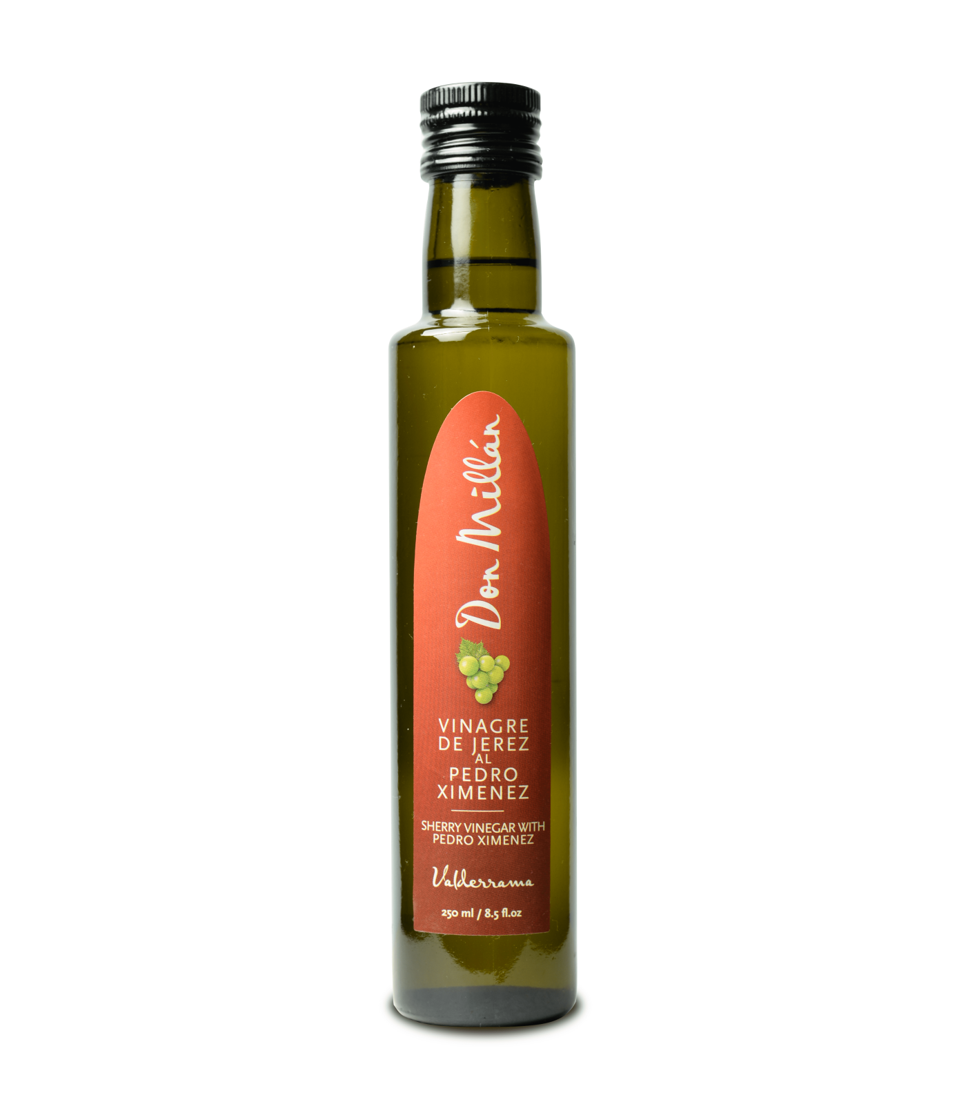 Don Millán Jerez and Pedro Ximénez Valderrama vinegar is a high-quality, artisanal product from the Jerez region of Spain. Made from Pedro Ximénez wine, a sweet, aromatic wine, it has a uniquely sweet touch.