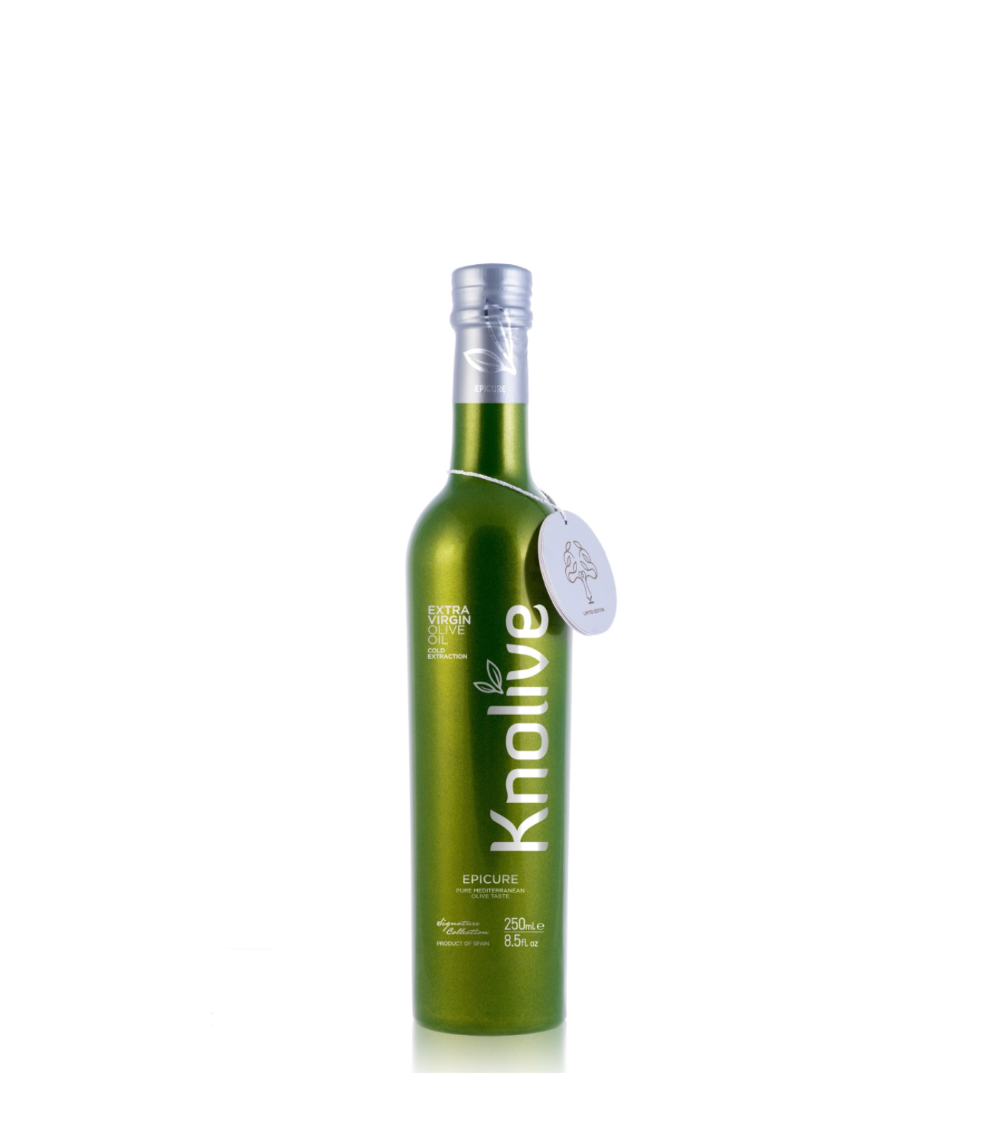 Este aceite virgen extra Priego de Córdoba (España-Sierra de la Subbética) es un Coupage de variedades hojiblanca y picuda, de elegante color verde con reflejos dorados delicados. Aromas frescos y frutados de manzana y aceituna verde madura.