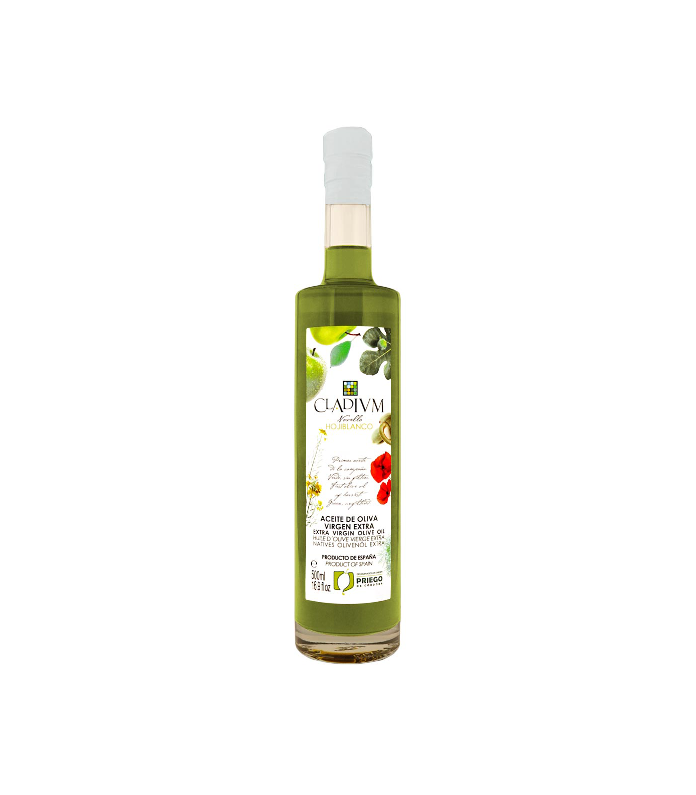 Aceite de Oliva Virgen Extra producido en Carcabuey (Córdoba) con aceitunas de la variedad Hojiblanca y amparado por la Denominación de Origen Protegida "Priego de Córdoba".