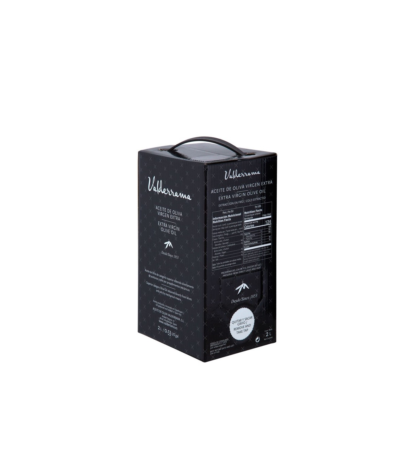 Su envase «Bag in Box» de 2 litros ofrece practicidad y ahorro, al tiempo que preserva la frescura del aceite protegiéndolo de la luz y la oxidación.