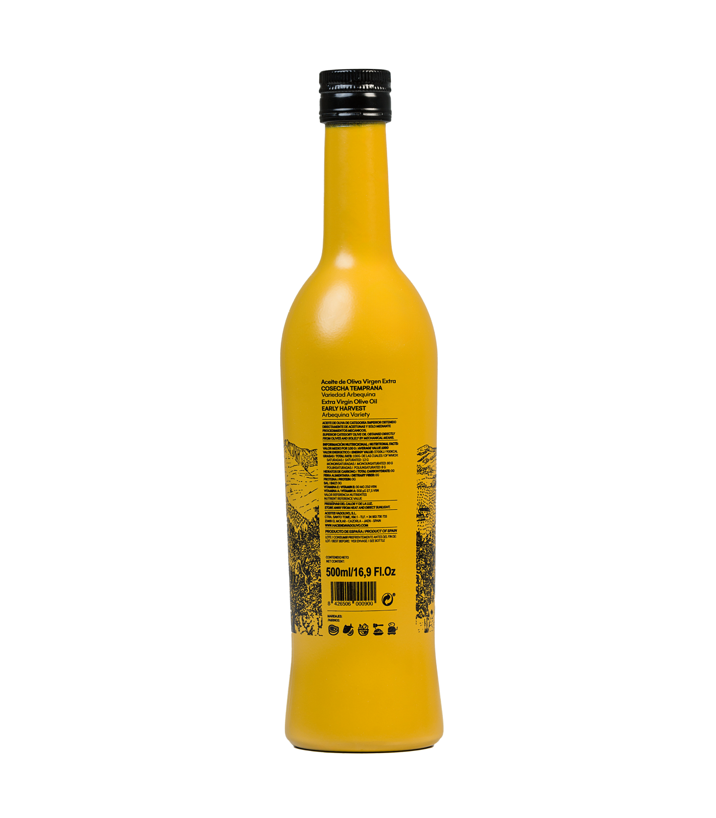 Aceite premium de una calidad intachable, unos aromas a fruta y frutos secos especialmente a almendra con una valoración organoléptica radiante.