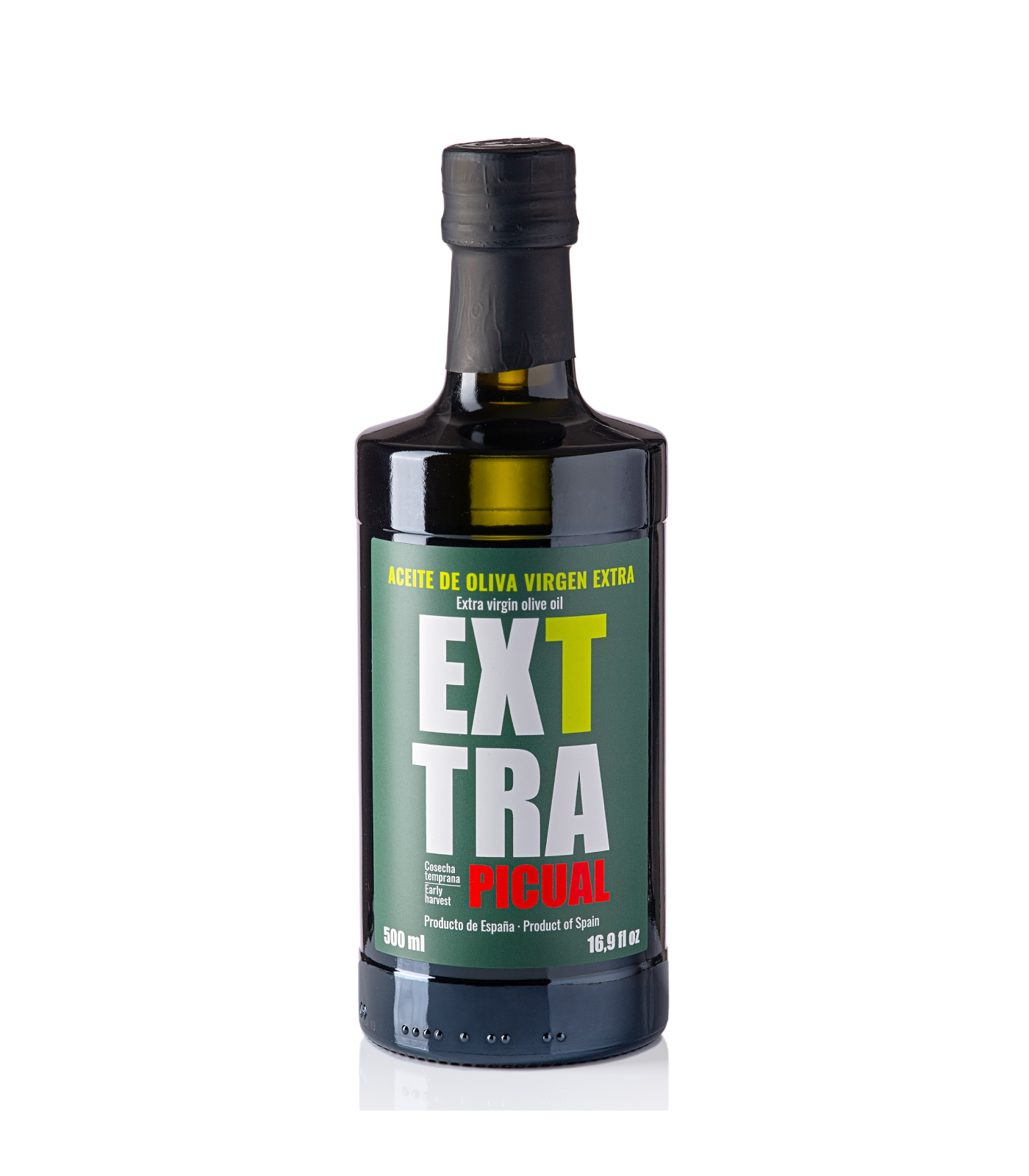 Exttra Original es un aceite de oliva virgen extra de la variedad Picual procedente de Jaén, de cosecha temprana y de primera presión en frío, y es envasado en botella de cristal.