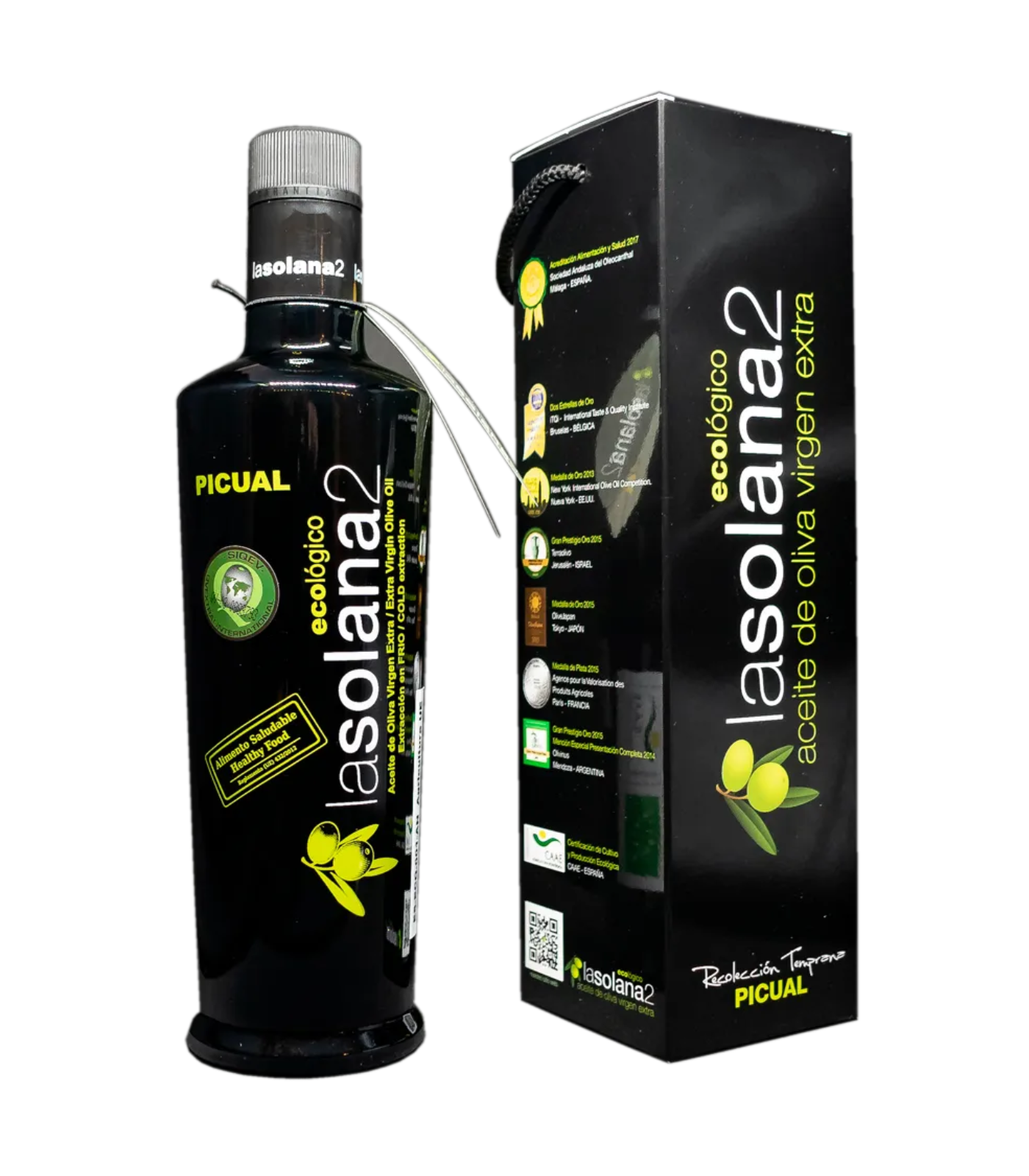 lasolana2 tiene un sabor especial y muy diferenciado, por ello ha sido premiado en los concursos más importantes de aceite de oliva virgen extra del mundo y cada cosecha supera los estrictos controles y análisis que exige QV Extra Internacional para poder portar el Sello SIQEV en su aceite, certificando también su alto contenido en polifenoles y antioxidantes naturales.