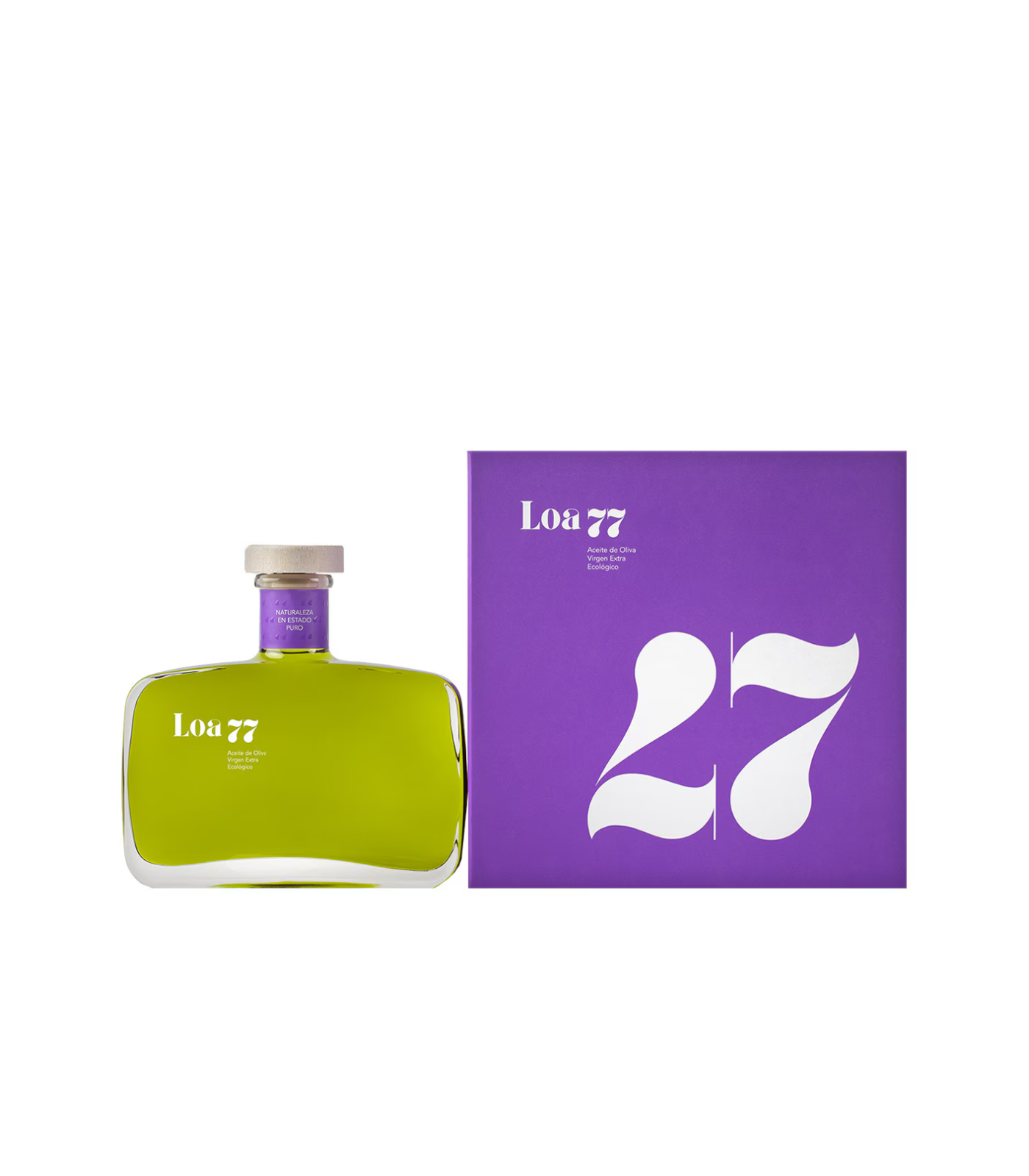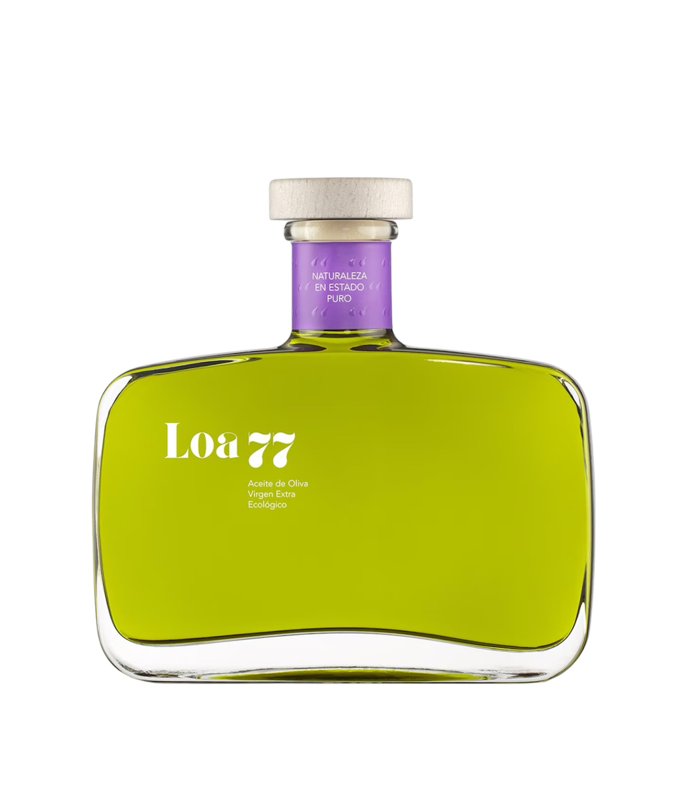 Loa 77 nace de la selección de 77 hileras de olivos ecológicos de finca propia, seleccionados de forma rigurosa por su variedad y terroir. El olivar seleccionado para su elaboración está envuelto sobre mantos de lavanda, planta aromática que sirve de cubierta vegetal, contribuyendo a la mejora de la biodiversidad. Loa 77 es un elogio a la naturaleza y un homenaje a la excelencia, la calidad y el estilo de vida mediterráneo. Además, su sofisticado packaging hace de este aceite de oliva virgen extra un recuerdo memorable.
