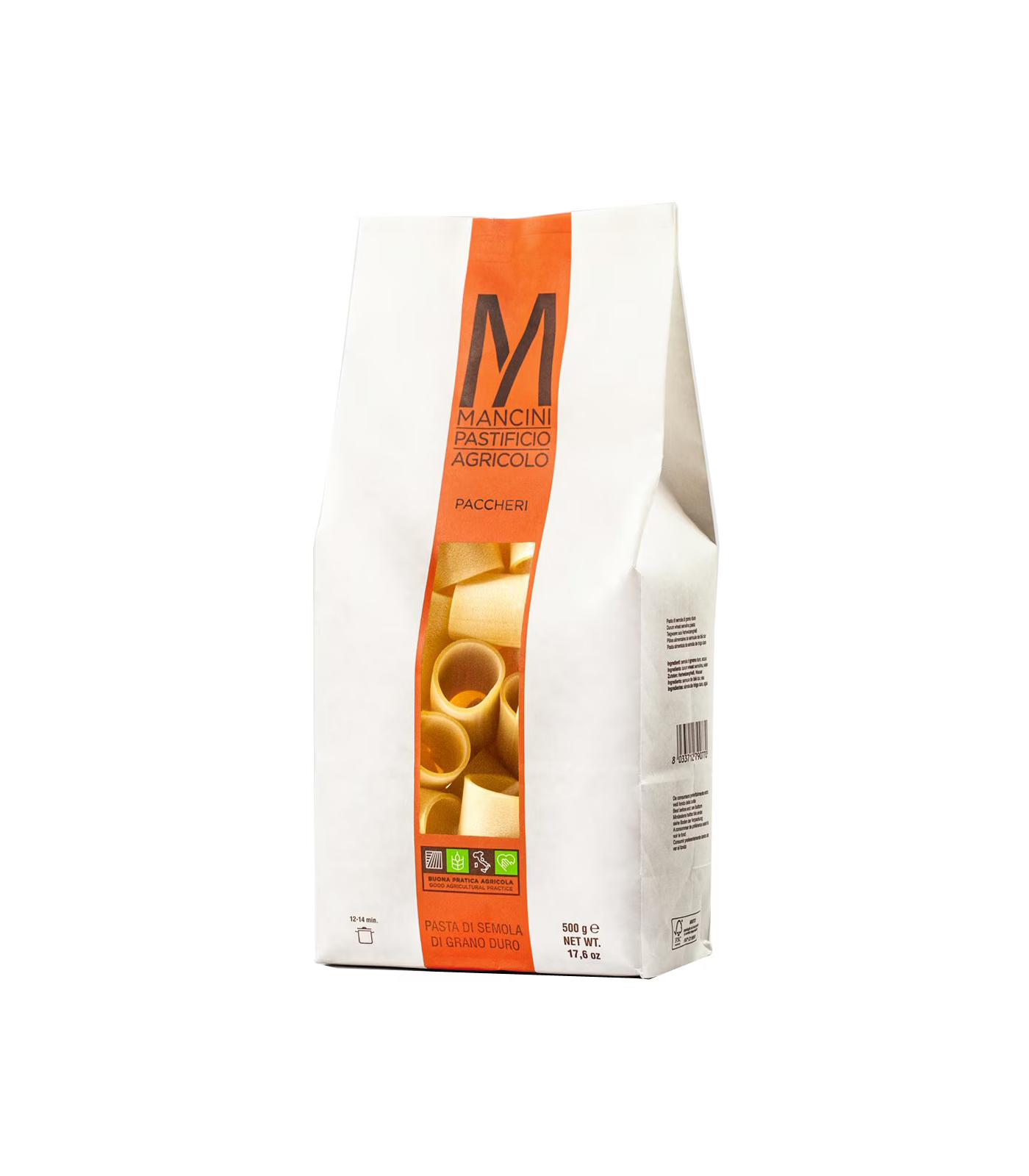 Mancini Pastificio Agricolo es una empresa italiana que produce pasta tan solo con el trigo que cultiva directamente en los campos que la rodean, siendo así la una compañía elaboradora de pasta del mundo que utiliza toda la materia prima procedente de sus propios cultivos.
