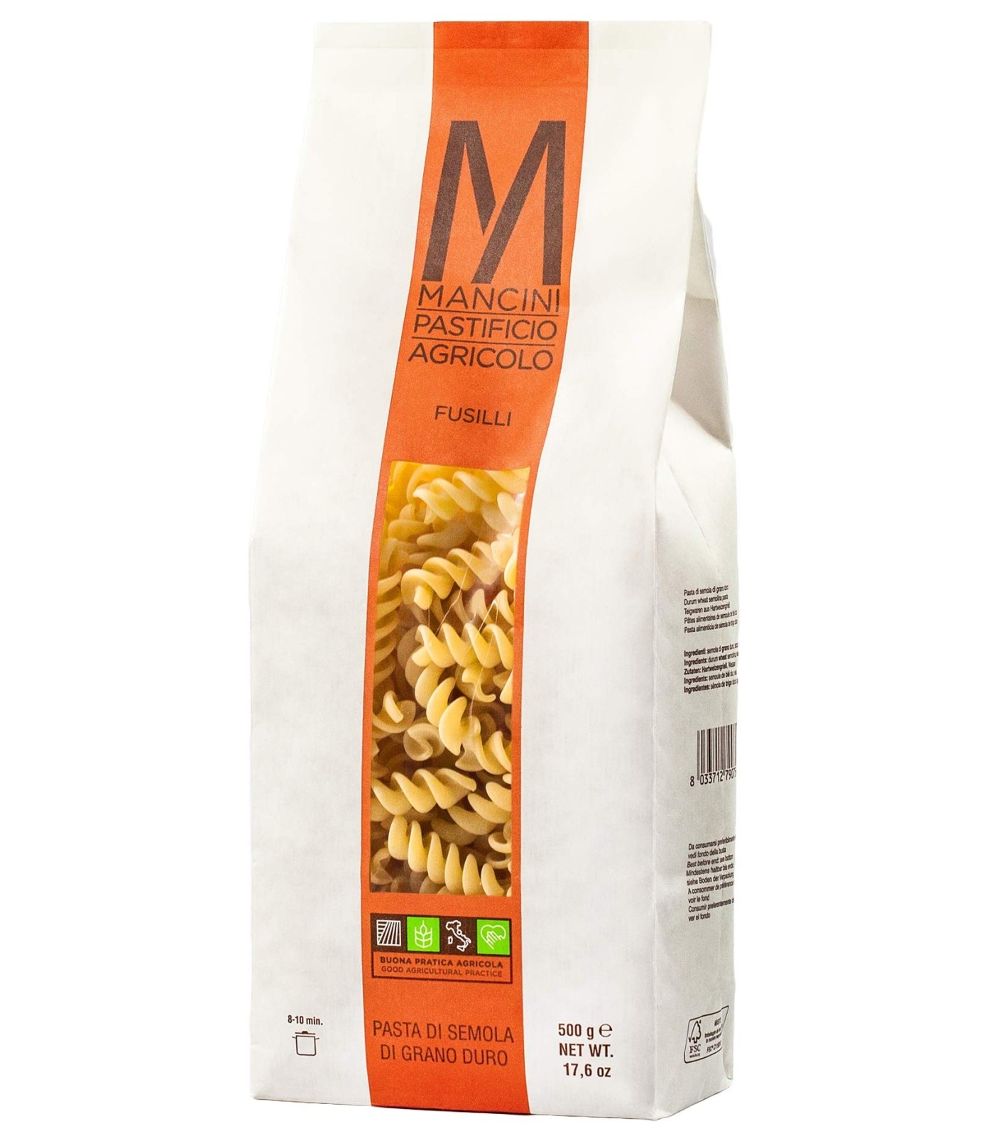 Mancini Pastificio Agricolo es una empresa italiana que produce pasta tan solo con el trigo que cultiva directamente en los campos que la rodean, siendo así la una compañía elaboradora de pasta del mundo que utiliza toda la materia prima procedente de sus propios cultivos.