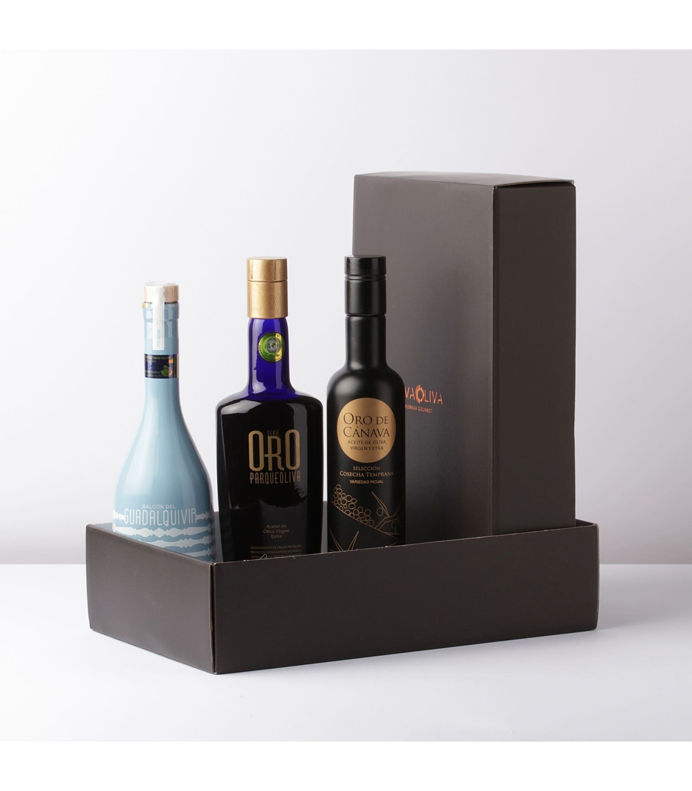 Esta caja regalo incluye los 3 mejores aceites de oliva virgen extra del mundo en el año 2021, galardonados con el Premio Internacional a la Calidad Mario Solinas.