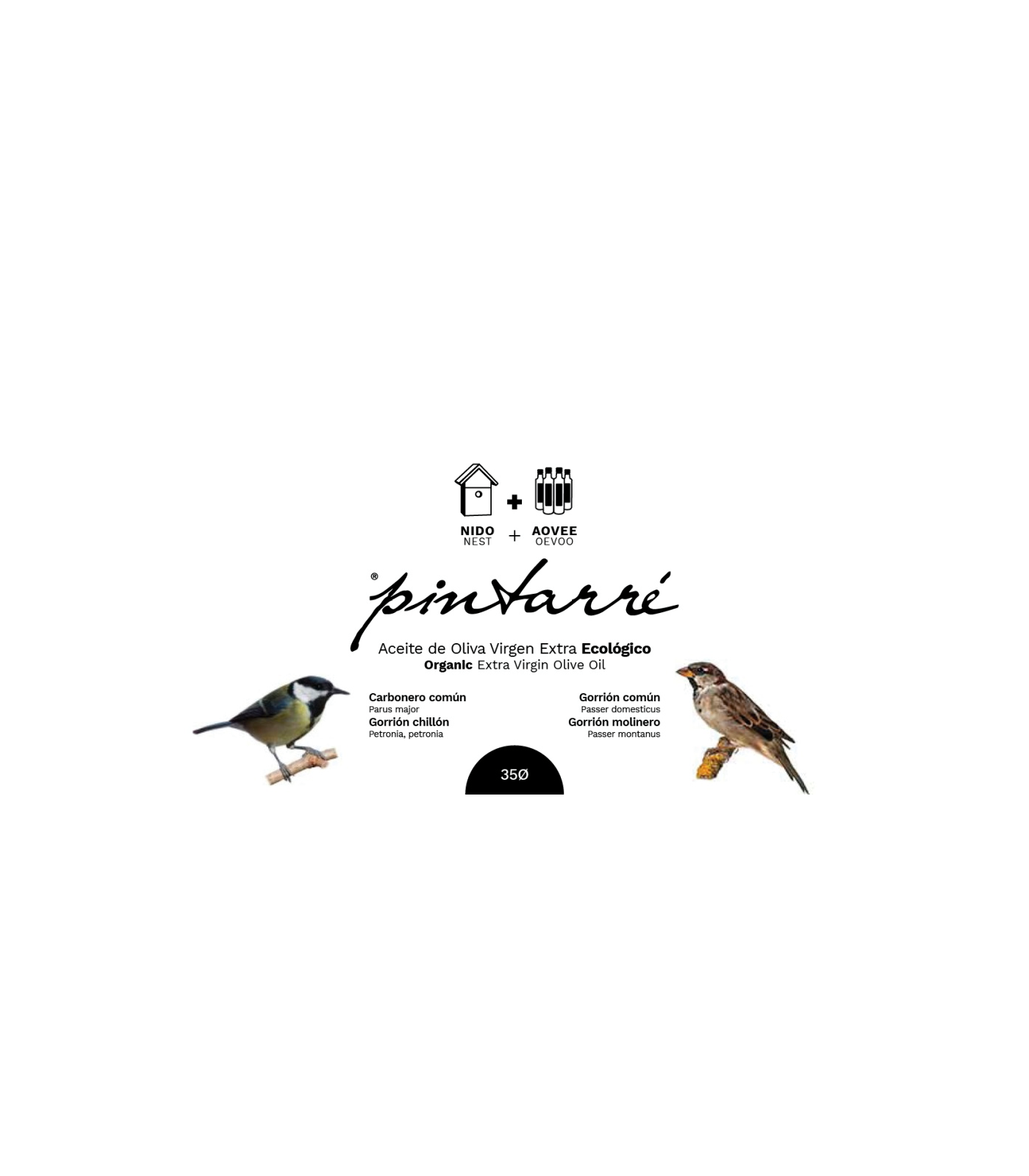 Este nido incluye 4 botellas de aceite de oliva virgen extra ecológico Pintarré Envero BIO Cosecha Temprana 250 ml.
