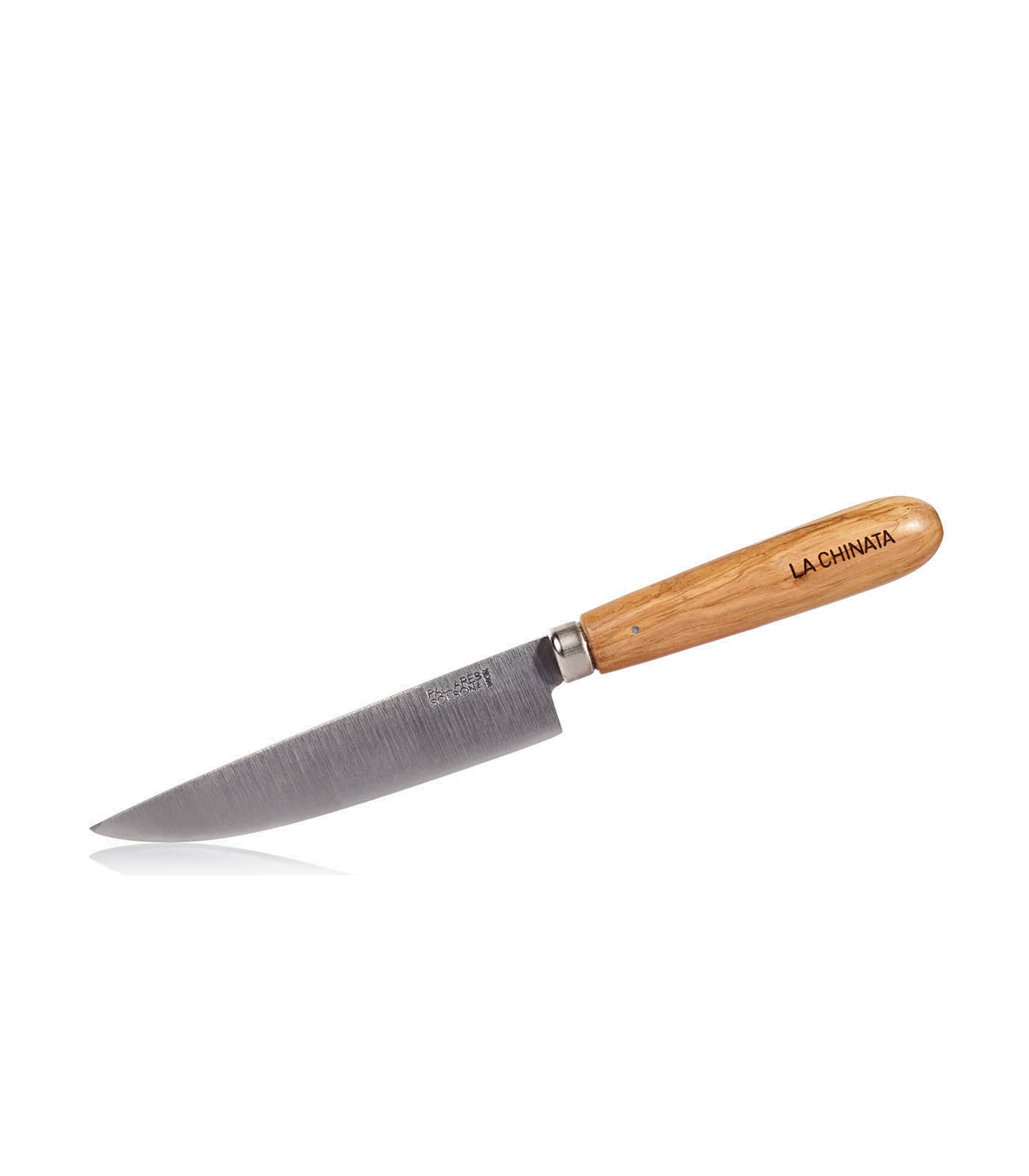 Este cuchillo artesanal de La Chinata está elaborado a partir de acero inoxidable y madera de olivo. Combina una versátil hoja de acero inoxidable de 12 centímetros y un mango de madera de olivo torneado a mano.