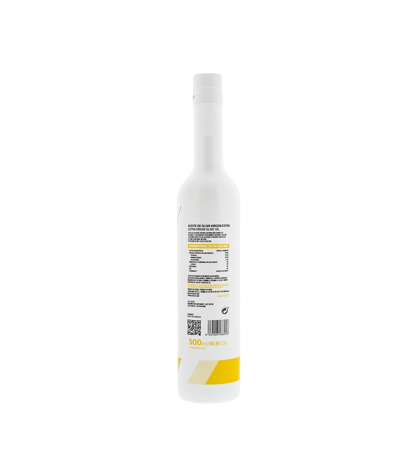 Huile d'olive vierge extra Arbequina de récolte précoce et d'extraction à froid produite à Teba (Malaga).