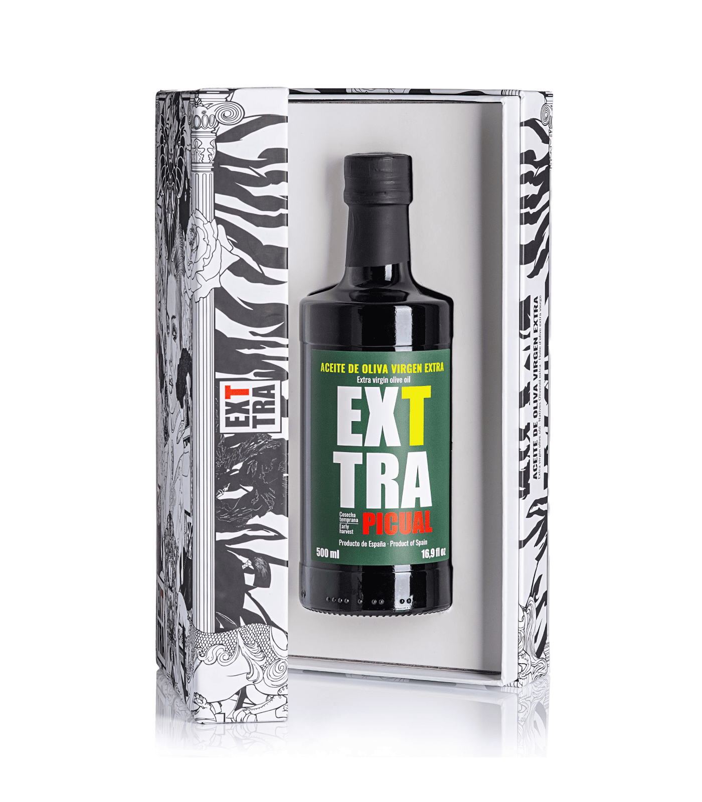 Exttra Original Picual est une huile d'olive vierge extra de la variété picual de Jaén, de récolte précoce et de première pression à froid, et est embouteillée dans une bouteille en verre.