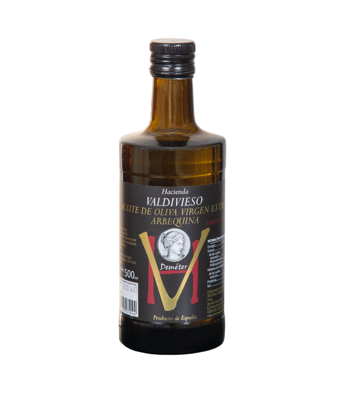 Huile d'olive vierge extra en édition limitée élaborée à Lora del Río (Séville) avec des olives de la variété Arbequina récoltées à la fin du mois de septembre.