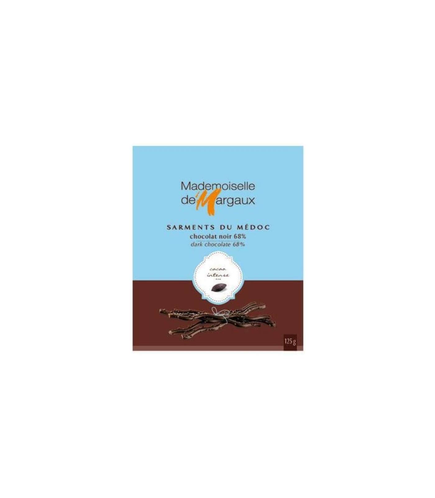 12x Mademoiselle de Margaux Chocolat noir sarments de vigne 68% - Boîte 125 gr.