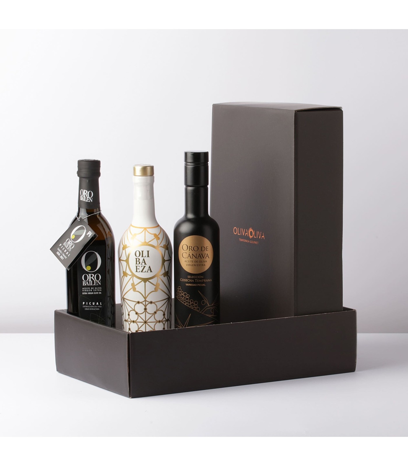Ce coffret comprend 3 des meilleures huiles d'olive extra vierge de Jaén en 2021, récompensées dans le cadre de Jaén Selección.
