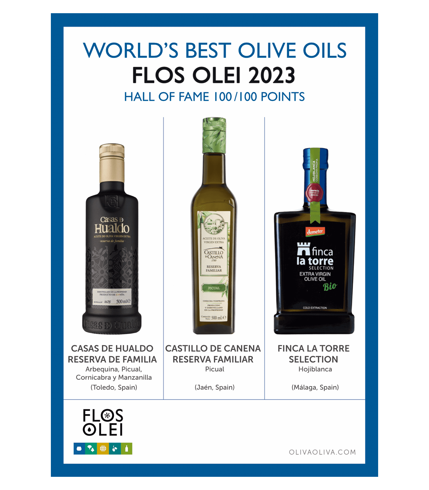 Le guide international Flos Olei passe en revue les régions de l'ensemble du secteur oléicole, où sont dégustées chaque année environ 1 000 huiles provenant de différents producteurs et pays du monde. Ce guide est considéré comme les Oscars de l'huile d'olive vierge extra et constitue une référence dans le secteur.